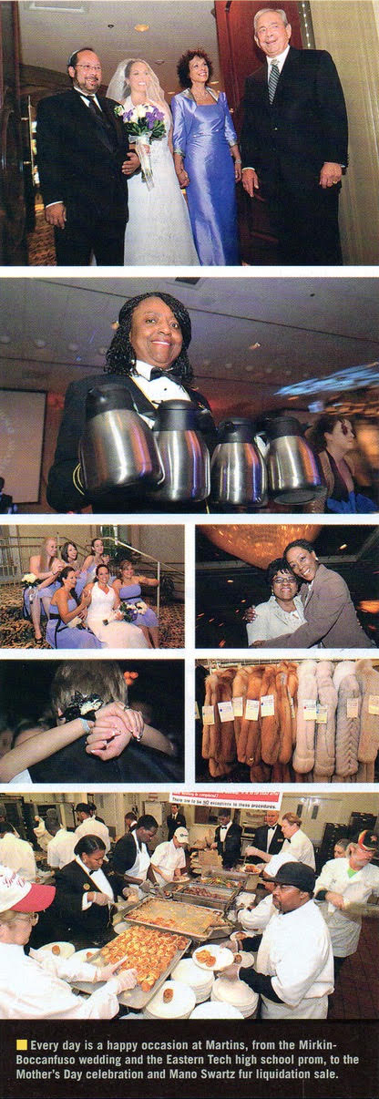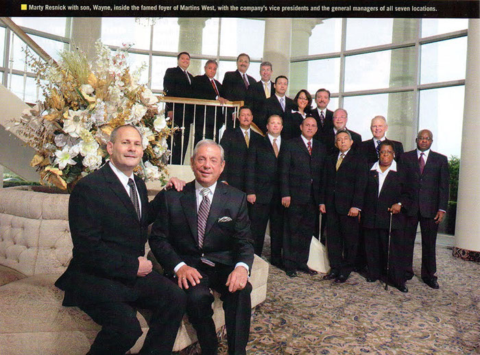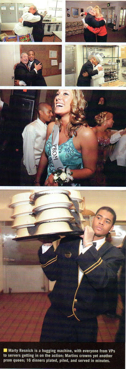 Loyalty to Martins extends to its workforce, which now numbers 820. "I don't look at my business as just a building and a chafing dish," says Marty Resnick. "I've always tried to create a family atmosphere for my employees. If someone wants to grow, I make sure there are opportunities. It's not a dead-end job." His servers average 14 years of service, and his cooks, 20 years. The 16 vice presidents and general managers, a group Marty Resnick calls "the backbone of the business," have a combined 309 years of service. Child labor laws notwithstanding, Resnick's vice president of operations, William Fischer, now 54, confesses to starting work for the chain when he was 11 years old, as a dishwasher.