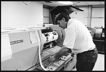 1981 BCFD, Truck 11 Firefighter Jimmie Hayes removes glass from eye, Fire, Riggs Avenue